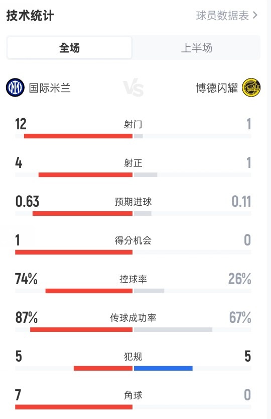 半场数据如下:
