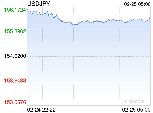 新浪外汇消息2026年02月25日,截至05时00分,外汇市场上美元兑日元汇率突破1美元兑换155.8500日元。涨幅为0.7955%
