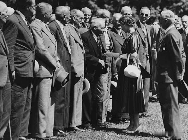 1954年2月23日,英国女王伊丽莎白二世和爱丁堡公爵菲利普亲王(后称爱丁堡公爵菲利普亲王)在堪培拉邓特伦皇家军事学院接受参谋军校学员的检阅。随后,这对皇室夫妇在国会大厦草坪上会见了参加过第一次世界大战的退伍军人。 1954年,英女王伊丽莎白二世作为首位访问澳大利亚的在位君主,进行了为期58天(2月3日至4月1日)的旋风式访问。这次行程覆盖了澳大利亚除达尔文以外的所有首府城市以及70个乡镇。 据估计,当时全澳约900万人口中,有近 75% 的民众曾亲眼目睹女王风采。 女王夫妇飞行了约1万英里(33次飞行),乘车行程达2000英里(共207次,累计130小时),并多次搭乘“皇家专列”。