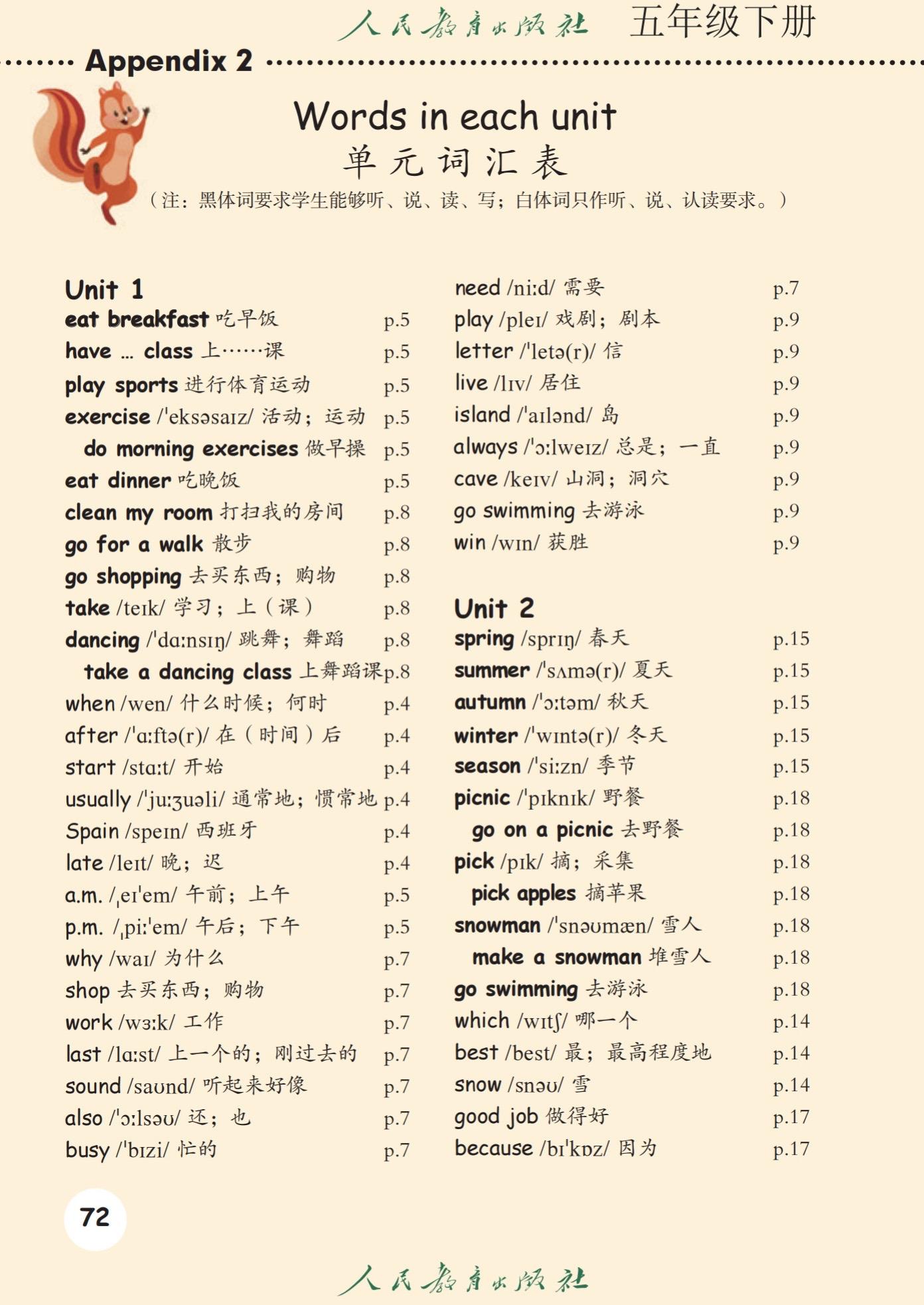 小学五年级英语上下册单词汇总整理资料。