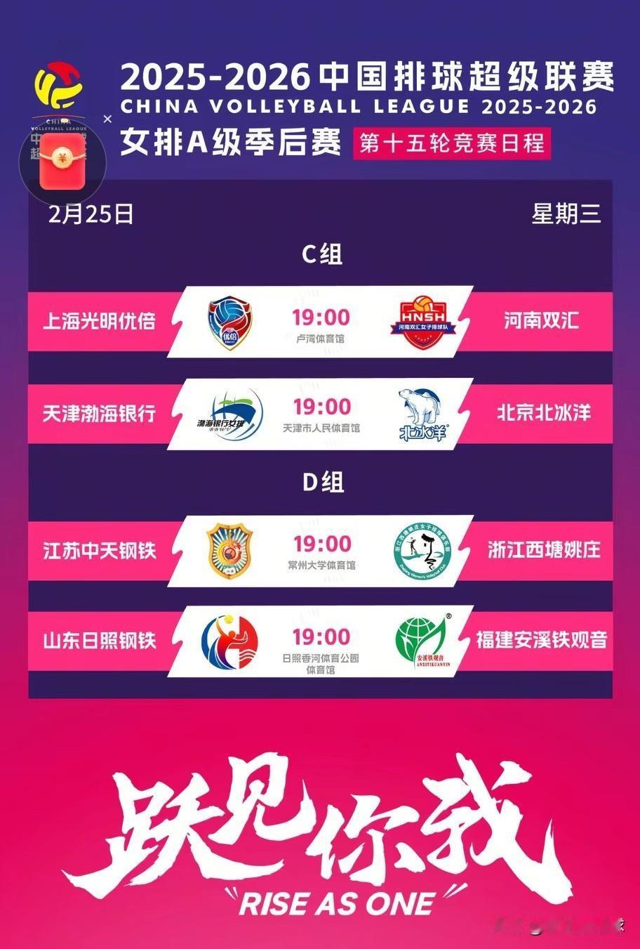 紧瞅董禹含,锁定季雨萧,春节开年季后赛的2个年轻小将将会狠抓球迷的眼球。 今天开年4场比赛,京津之战最值得一看。 两队实力比较接近,关乎C组第二名之争。 季后赛天津王艺竹将会复出,不知道今晚主攻首发谁,是娜塔莉娅和刘美君,还是娜塔莉娅和王艺竹? 还是王艺竹轮到后排,换上刘美君? 其实天津也犹如中国女排,接应也有点愁人。 北京女排董禹含会不会季后赛复出,还有膝盖受伤会不会对她的弹跳有影响。 现在中国女排主攻也缺人。 其实健康的董禹含论个头和实力,也是接应的人选之一。 另外一场苏浙之战,论实力江苏肯定强于浙江。大概3:0拿下! 至于浙江的强发球轮,我想倪非凡和吴梦洁能顶得住。只是比较考校唐欣的一传,她顶不住,后面还有替补魏依珊呢! 中国女排接应缺人,重点关注季雨萧在A组的表现。 就像小庄(圣乔瓦尼)有时候不敌对手,但是她个人表现数据球迷也是点头称赞的。 季后赛要重点看接应位置年轻小将的表现。 天南地北大拜年