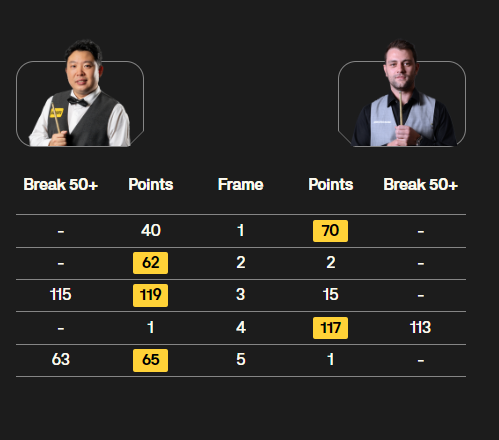 全场比赛,张安达打出单杆115、63分,曼恩打出一杆113分。