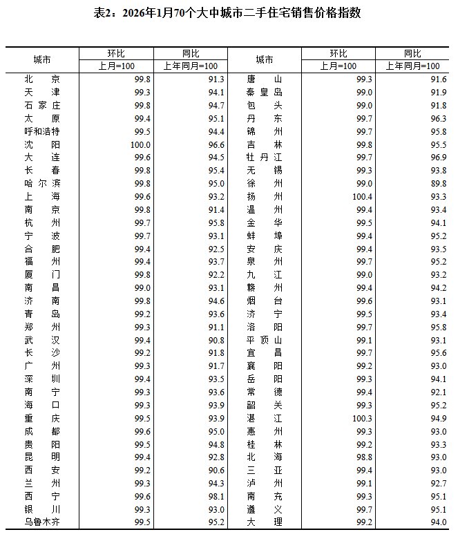 同比方面,一线城市二手住宅销售价格同比下降7.6%,降幅比上月扩大0.6个百分点。二、三线城市二手住宅销售价格同比分别下降6.2%和6.1%,降幅分别扩大0.2个和0.1个百分点。