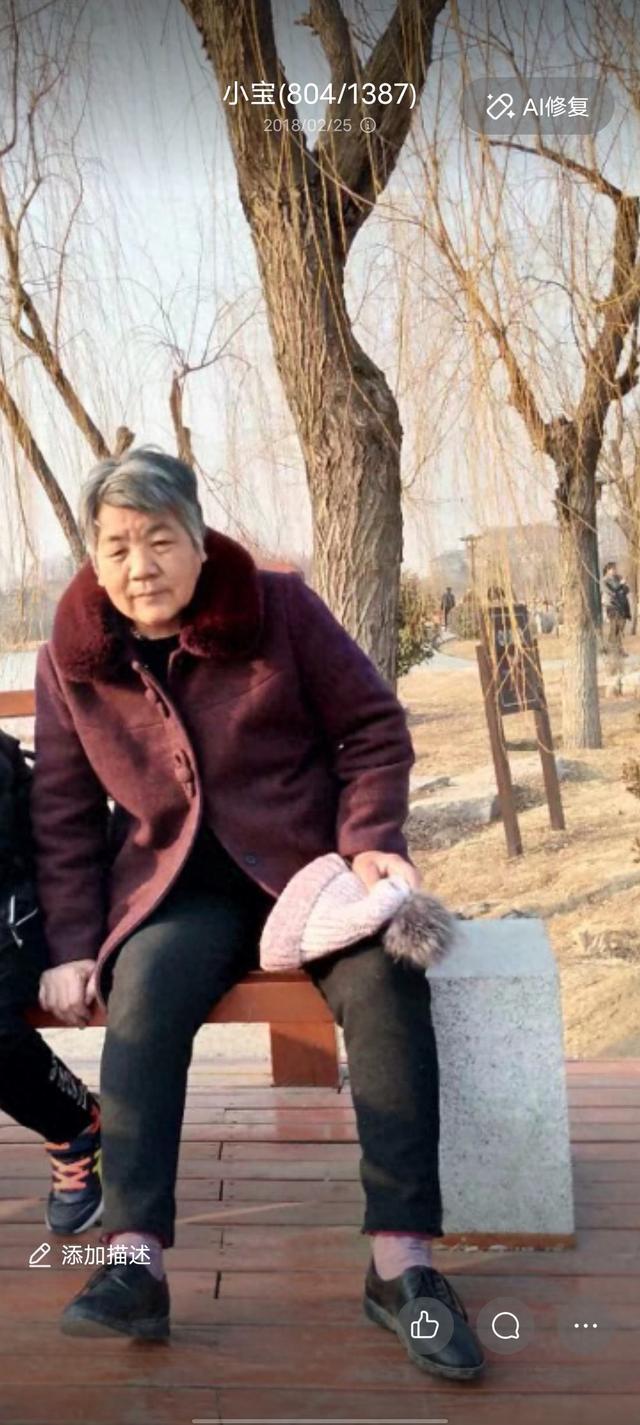 走失者特征:穿蓝底白色印花上衣,高1米66,白发