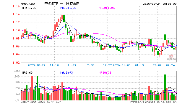 2月24日,中药ETF(560080)涨0.57%,成交额4742.29万元。当日份额减少50.00万份,最新份额为24.18亿份,近20个交易日份额增加1.14亿份。最新资产净值计算值为25.54亿元。