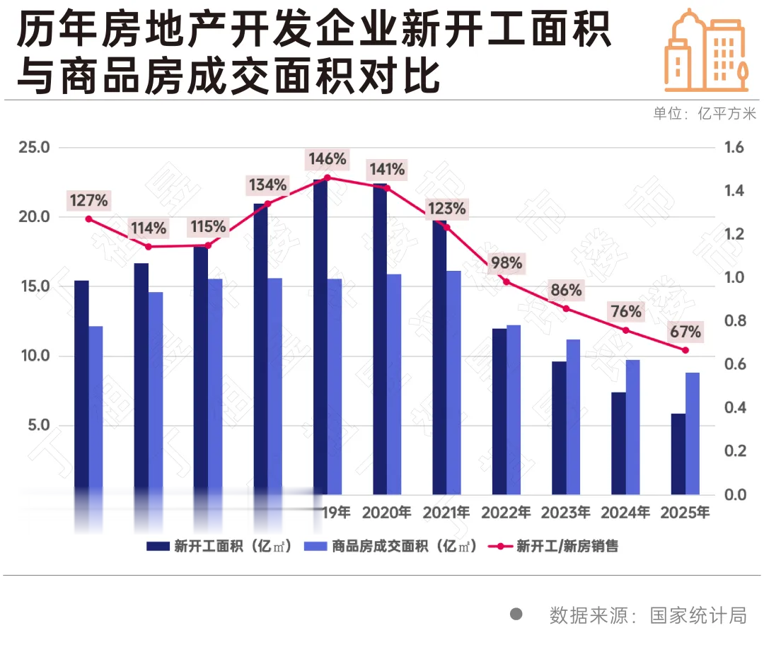 “控增量、去库存”与“供应结构优化”构成底部企稳的基础。新开工规模连续四年低于销售规模,2025年住宅新开工仅为新房销售的67%,降至历史低位。百城新房供求比已连续四年小于1。土地市场缩量提质、优质地块价值重估。行业正通过供给端的理性收缩,逐步化解存量压力、实现供求平衡。