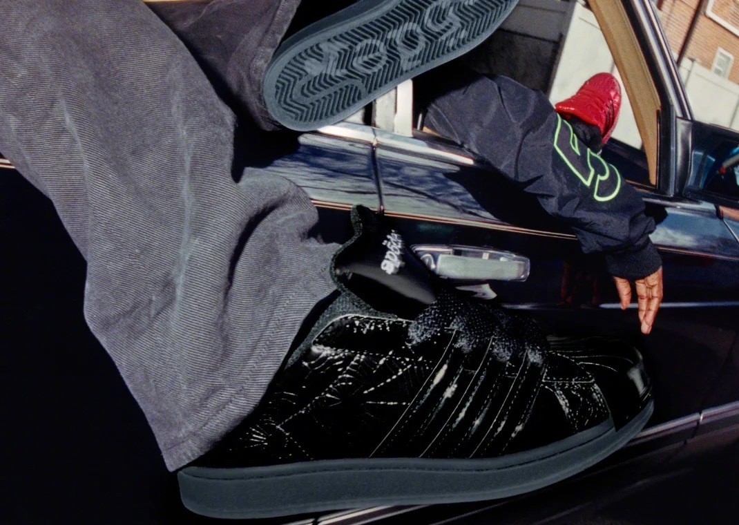 说唱歌手 Young Thug 创立的街头品牌 Sp5der 与再次合作,打造两款带有蛛网压纹漆皮鞋面的 Superstars 联名版本,鞋底还分别带有「555 555」和「Sp5der」的字样🕷