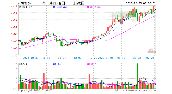 一带一路ETF富国(515150)业绩比较基准为中证国企一带一路指数收益率,管理人为富国基金管理有限公司,基金经理为汤杰强,成立(2019-11-06)以来回报为69.10%,近一个月回报为3.19%。