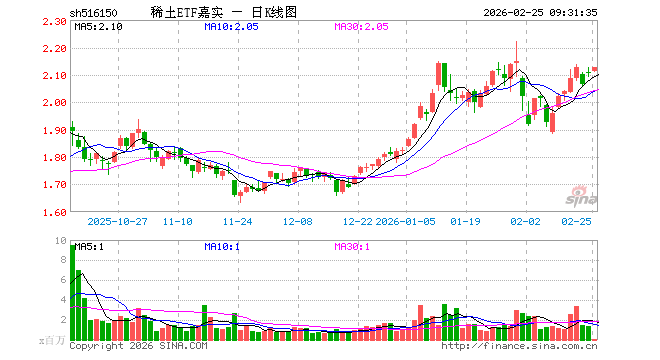 2月25日,稀土ETF嘉实(516150)开盘涨0.33%,报2.114元。稀土ETF嘉实(516150)重仓股方面,北方稀土开盘涨0.36%,金风科技涨0.46%,卧龙电驱跌0.49%,格林美跌0.21%,厦门钨业涨1.39%,中国铝业涨0.85%,领益智造涨0.32%,中国稀土涨0.83%,包钢股份涨0.38%,盛和资源涨1.34%。