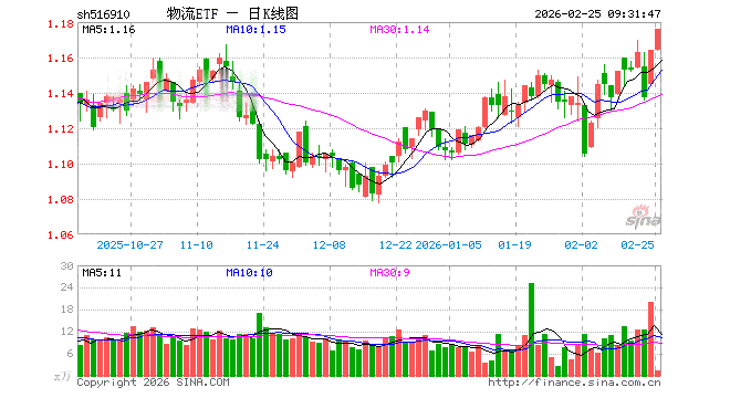 2月25日,物流ETF(516910)开盘涨0.00%,报1.164元。物流ETF(516910)重仓股方面,中远海控开盘涨0.07%,顺丰控股涨0.05%,京沪高铁涨0.00%,招商轮船涨4.33%,大秦铁路涨0.20%,圆通速递跌0.06%,蔚蓝锂芯涨0.06%,中远海能涨4.40%,物产中大涨0.18%,建发股份跌0.11%。
