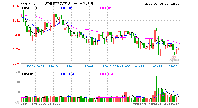 2月25日,农业ETF易方达(562900)开盘涨0.00%,报0.779元。农业ETF易方达(562900)重仓股方面,牧原股份开盘跌0.11%,温氏股份涨0.26%,海大集团跌0.17%,正邦科技涨0.32%,新希望涨0.00%,梅花生物涨0.00%,生物股份涨0.31%,大北农涨0.00%,隆平高科涨0.10%,北大荒跌0.51%。