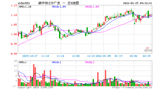 2月25日,碳中和ETF广发(560550)开盘涨0.18%,报1.103元。碳中和ETF广发(560550)重仓股方面,紫金矿业开盘涨0.20%,宁德时代涨0.48%,长江电力涨0.12%,比亚迪涨0.02%,阳光电源跌0.67%,洛阳钼业涨0.61%,万华化学涨0.72%,汇川技术跌0.09%,三花智控涨0.02%,特变电工涨0.07%。