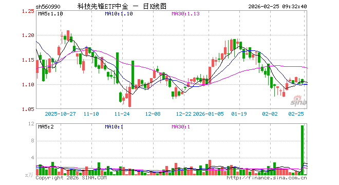 2月25日,科技先锋ETF中金(560990)开盘跌0.09%,报1.101元。科技先锋ETF中金(560990)重仓股方面,宁德时代开盘涨0.48%,寒武纪涨0.79%,恒瑞医药跌0.05%,药明康德跌0.07%,工业富联涨0.78%,阳光电源跌0.67%,海光信息涨0.75%,立讯精密跌0.16%,中芯国际涨1.02%,北方华创涨0.23%。