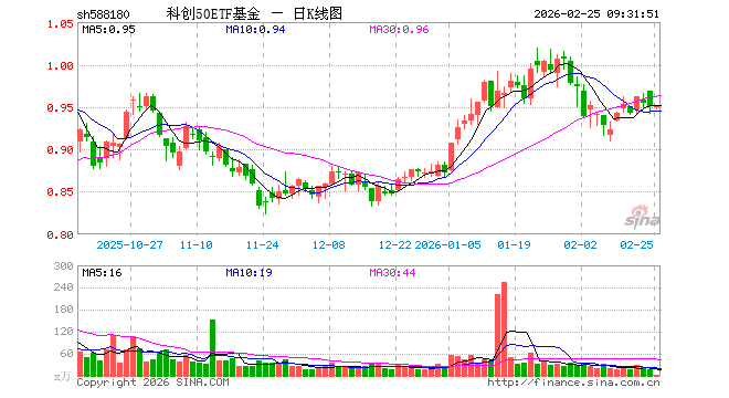 2月25日,科创50ETF基金(588180)开盘涨0.00%,报0.950元。科创50ETF基金(588180)重仓股方面,中芯国际开盘涨1.02%,寒武纪涨0.79%,海光信息涨0.75%,澜起科技涨0.01%,中微公司跌0.20%,金山办公涨0.40%,联影医疗涨0.00%,拓荆科技涨0.82%,芯原股份跌2.92%,沪硅产业跌0.05%。