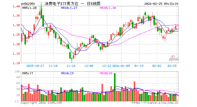消费电子ETF易方达(562950)业绩比较基准为中证消费电子主题指数收益率,管理人为易方达基金管理有限公司,基金经理为李博扬,成立(2022-01-12)以来回报为29.54%,近一个月回报为-3.95%。