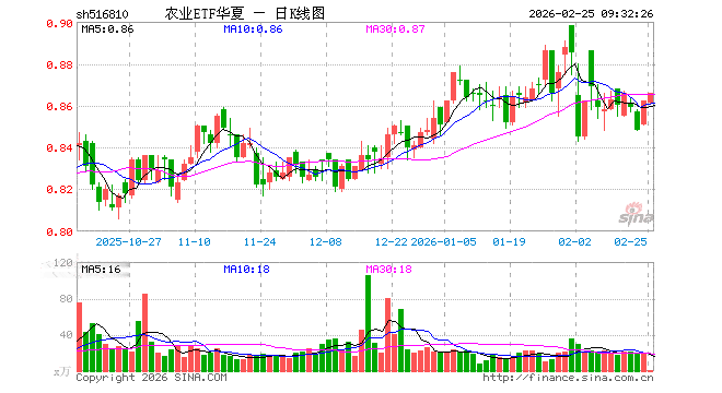 2月25日,农业ETF华夏(516810)开盘跌0.12%,报0.861元。农业ETF华夏(516810)重仓股方面,牧原股份开盘跌0.11%,温氏股份涨0.26%,海大集团跌0.17%,藏格矿业涨0.45%,盐湖股份涨0.73%,亚钾国际涨0.25%,正邦科技涨0.32%,新希望涨0.00%,梅花生物涨0.00%,扬农化工涨0.04%。