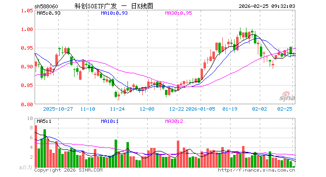 2月25日,科创50ETF广发(588060)开盘涨0.11%,报0.933元。科创50ETF广发(588060)重仓股方面,中芯国际开盘涨1.02%,寒武纪涨0.79%,海光信息涨0.75%,澜起科技涨0.01%,中微公司跌0.20%,金山办公涨0.40%,联影医疗涨0.00%,拓荆科技涨0.82%,芯原股份跌2.92%,沪硅产业跌0.05%。