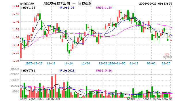 A50增强ETF富国(563280)业绩比较基准为MSCI中国A50互联互通人民币指数收益率,管理人为富国基金管理有限公司,基金经理为徐幼华,成立(2024-04-01)以来回报为35.72%,近一个月回报为-1.07%。