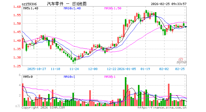 2月25日,汽车零件ETF(159306)开盘跌0.40%,报1.480元。汽车零件ETF(159306)重仓股方面,汇川技术开盘跌0.09%,三花智控涨0.02%,福耀玻璃跌0.41%,拓普集团跌0.10%,长盈精密涨0.00%,赛轮轮胎跌0.25%,德赛西威跌0.69%,银轮股份跌0.83%,双环传动跌0.05%,华域汽车跌0.15%。