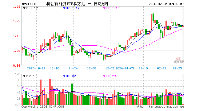 科创新能源ETF易方达(589960)业绩比较基准为上证科创板新能源指数收益率,管理人为易方达基金管理有限公司,基金经理为李博扬,成立(2025-09-10)以来回报为16.07%,近一个月回报为-5.63%。