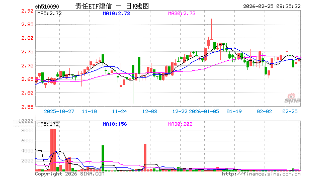 责任ETF建信(510090)业绩比较基准为上证社会责任指数,管理人为建信基金管理有限责任公司,基金经理为张溢麟,成立(2010-05-28)以来回报为223.35%,近一个月回报为0.60%。
