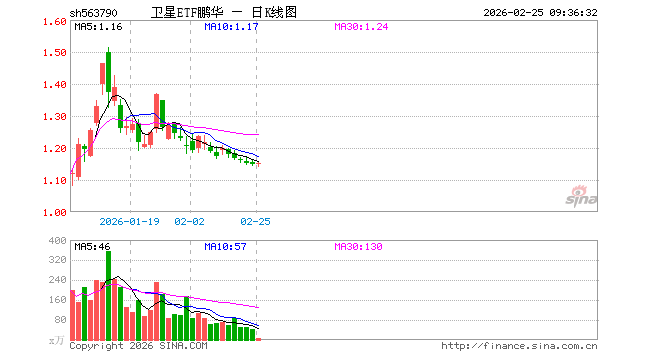 2月25日,卫星ETF鹏华(563790)开盘涨0.00%,报1.150元。卫星ETF鹏华(563790)重仓股方面,中国卫星开盘涨0.10%,航天电子涨0.79%,臻镭科技涨1.00%,中国卫通涨0.00%,中科星图涨0.14%,华测导航涨0.76%,北斗星通涨0.00%,北方导航涨0.00%,芯原股份跌2.92%,国博电子涨0.10%。