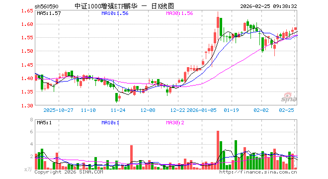 中证1000增强ETF鹏华(560590)业绩比较基准为中证1000指数收益率,管理人为鹏华基金管理有限公司,基金经理为寇斌权,成立(2023-09-01)以来回报为57.68%,近一个月回报为-1.60%。