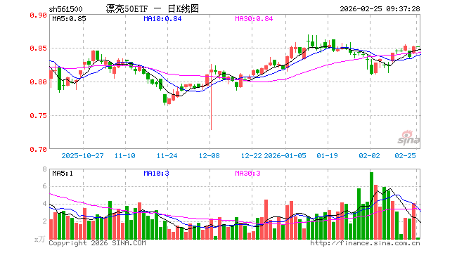2月25日,漂亮50ETF(561500)开盘涨0.00%,报0.852元。漂亮50ETF(561500)重仓股方面,东方财富开盘涨0.27%,恒瑞医药跌0.05%,阳光电源跌0.67%,万华化学涨0.72%,迈瑞医疗涨0.00%,豪威集团涨0.01%,福耀玻璃跌0.41%,天孚通信涨0.37%,思源电气跌0.48%,生益科技涨0.40%。