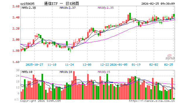 2月25日,通信ETF嘉实(159695)开盘涨1.37%,报2.450元。通信ETF嘉实(159695)重仓股方面,中际旭创开盘跌0.72%,新易盛跌0.55%,中兴通讯涨0.34%,中国移动跌0.16%,中国电信涨0.17%,天孚通信涨0.37%,中国联通涨0.00%,信维通信跌0.04%,中天科技涨1.44%,亨通光电涨0.00%。