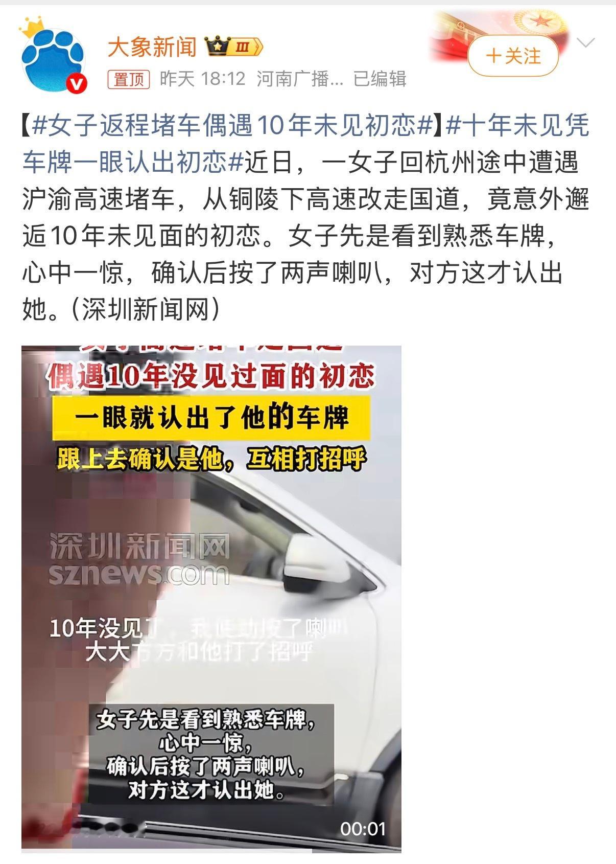 女子返程堵车偶遇10年未见初恋评论区比新闻好看多了