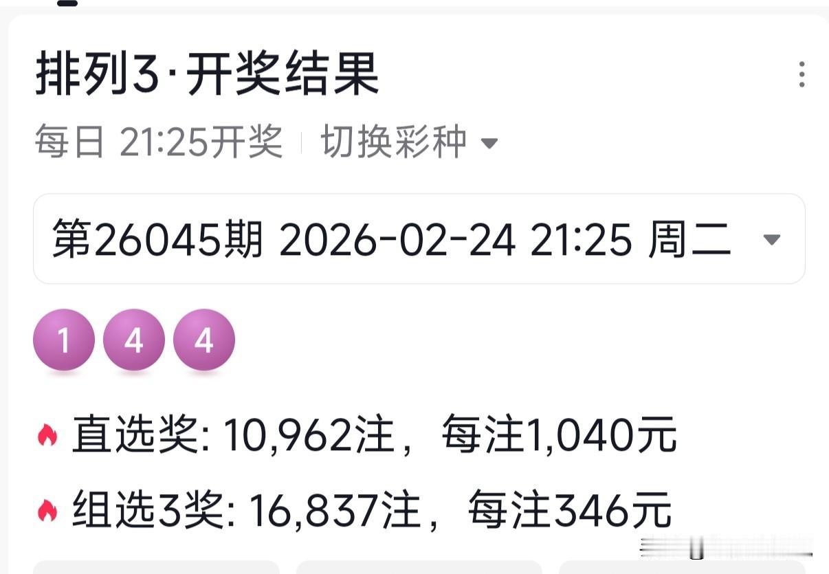 排列三26046期号码共享,重点关注小号继续热开 开奖快讯 排列三26045期开奖号码为:1 4 4 在农历马年新年后的第一期开奖中,1路号码便一马当先,以全1路号码形式横空开出,而且还是以组三形态开出,以号码4为对码,以号码1为单码。 本期选号复盘 本期午阳所选号码也迎来了开门红,在组选直选双命中的情况下,精选号码也是收获满满。首先是胆码1精准命中,其次百位金胆1和个位金胆4双双命中。不过在精选三码的选择上,非常可惜。 本期午阳重点关注了两码1-4组合,精选两码为1-0-4和1-6-4,而开奖号码则是开出了1-4-4,差一点便精准拿下。再接再厉,继续加油! 组选号码关注 0,2,3,4,6,8 直选号码关注 百位号码:2,4,3,0,6 十位号码:3,8,6,0,2 个位号码:5,0,3,4,8