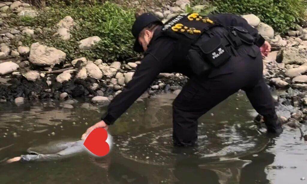 在大渡河边,一位40岁左右的女子仰面漂浮在水中,已无动静。江边乱石嶙峋,青苔遍布。特警魏德宏、魏海涛、王凯、张罗探身靠近后,果断伸手将女子拉出水面。随后,特警不断轻轻拍打女子的肩膀。