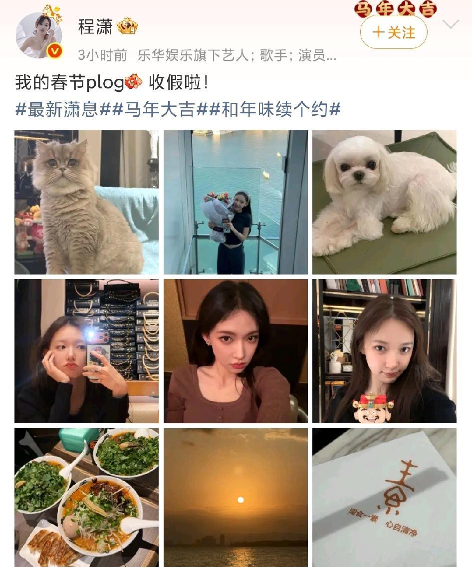 别信程潇微博上那句“期待2026”。 你细品,她春节PLOG里啃着排骨逗着猫的松弛感,才是顶级事业心的烟雾弹。 镜头外,她的日程表早就炸了。 主演的《永夜星河》今年就上,原著《黑莲花攻略手册》的书粉盘有多大你懂的。 综艺和时尚封面的邀约根本没断过,曝光量稳得很。 这姐们儿活得特别明白:一边拿作品,一边过生活。 真正的狠人,从来不是靠喊口号,而是用最松弛的姿态,执行最精准的节奏。