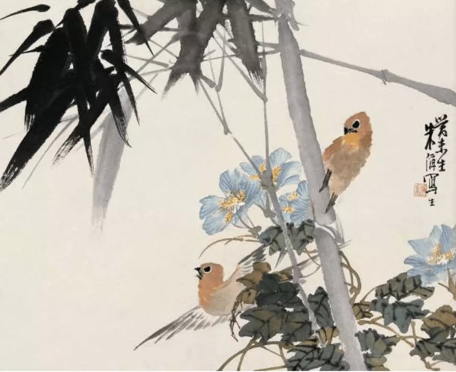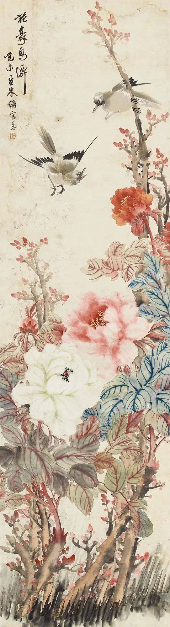 清 朱偁 花鸟。朱偁(1826—1900,一作1826—1899)清代画家,早岁名琛,后更今名,字梦庐,号觉未,别署鸳湖散人、玉溪外史、玉溪钓者、鸳湖画史、胥山樵叟,浙江嘉兴人。朱偁擅没骨花卉草虫,笔墨简练,敷色淡雅,生动传神。他把文人画的清逸雅致与民间绘画的通俗悦目及西方的色彩糅合在花鸟画中,创作了一种独特的清丽画风。这就是中国风遇见艺术