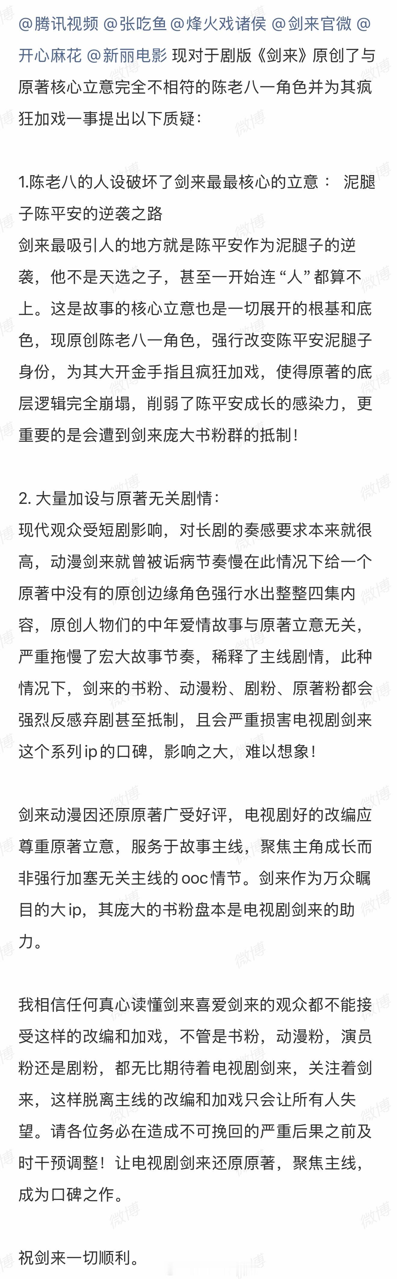 剑来男频剧给一番大男主应有的完整成长线和高光线是最基本的待遇,还要粉丝提醒剧组添