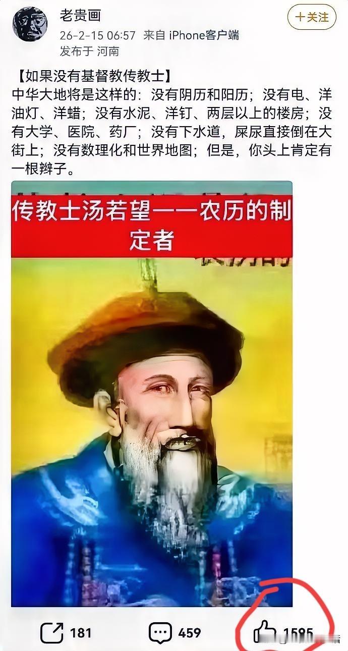 阿尔法军事对这些老公知的评论太到位了,分明就是他们在贼喊捉贼,关键是他们的认知水平和知识水平,真的不一定有抠脚大汉高。 到目前为止,除了他们这些公知、土殖们在说西方因为斩杀线而快要完蛋了以外,哪有一个正常的自媒体或者平台在说中国马上就无敌了啊。 我们现在只是打破滤镜,能够从原来的仰视西方,转变为现在的平视、对等而已,更多的是为了祛媚罢了。 他们一直鼓吹西方先进、崇尚自由,不断的贬低自己的国家,一直在干着给我们普通人降智的勾当,而不是他们说的企图,该保持警惕的是对他们。 农历的指定者什么时候成了传教士汤若望发明的了?再说了,汤若望这么牛叉,不还是在中国称臣。远在明朝的时候,他只是因精通天文学,在1630年被徐光启推荐进入钦天监历局,参与编纂《崇祯历书》。清军入关后,他因准确预测日食才获得了清廷的认可,在1645年被任命为钦天监监正。 另外是个中国人文化人都知道,农历历法并非由单一人物发明,而是中国古代天文学家集体智慧的结晶,其中西汉天文学家落下闳创制《太初历》,首次系统确立农历的核心框架(如正月为岁首、二十四节气制度),成为现代农历的直接源头。 还有他说那些乱七八糟的,更是无稽之谈,特别是医院,中国几千年的中医到现在都被西方很多地方奉为经典,一些配方被他们视为珍宝,中医的发展要比西医早多少年。 和这样的人进行辩论,都有损自己的智商,他的知识水平真的不如大街上的环卫工人高,但凡上过小学的人,都不能说出这样的话。 借用晚清思想家魏源的一句话,师夷长技以制夷,我们从来没有否认西方在某些方面的先进,我们一直也是抱着学习的态度,从来没有贬低的意思。 而他们这些人却一直在编织对立言论,自导自演吧了。现在发现年轻人不好糊弄了,又开始贼喊捉贼了,简直就是滑天下之大稽!