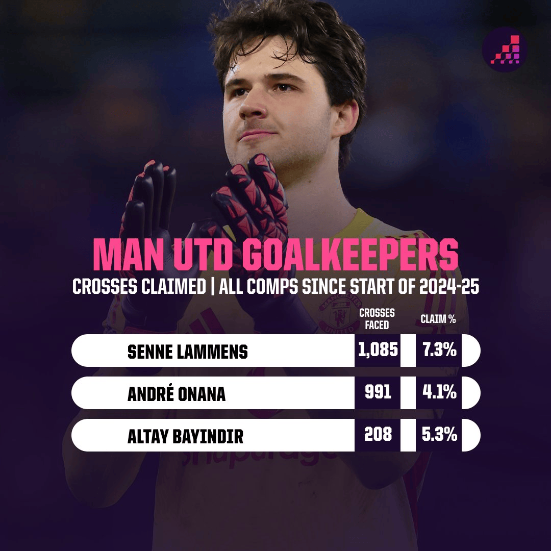 虎扑02月25日讯根据OptaAnalyst的统计,自2024/25赛季以来,拉门斯在面对1085次传中球时,摘球的成功率为7.3%。这项数据高于奥纳纳(991次,成功率4.1%)和巴因德尔(208次,5.3%)。