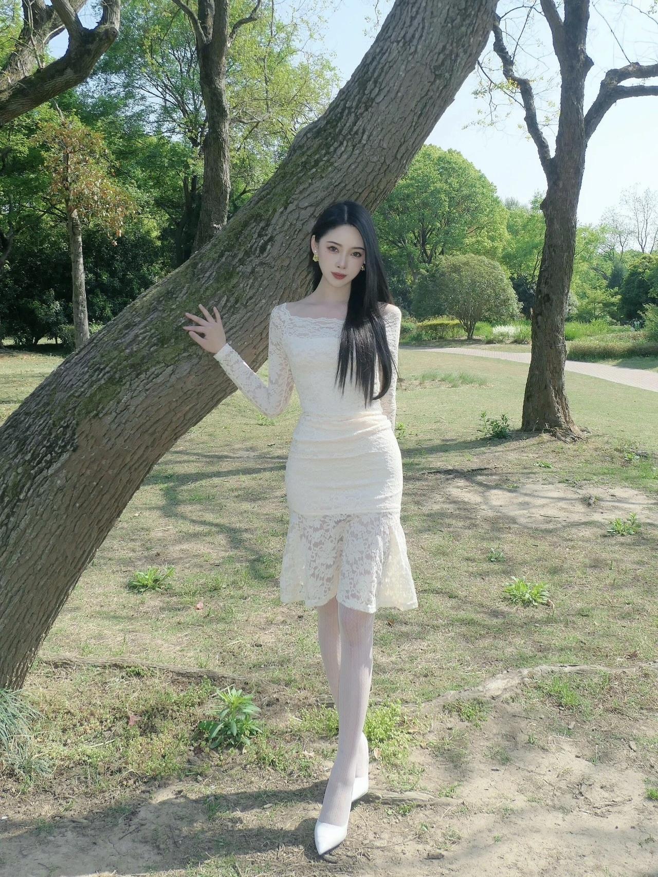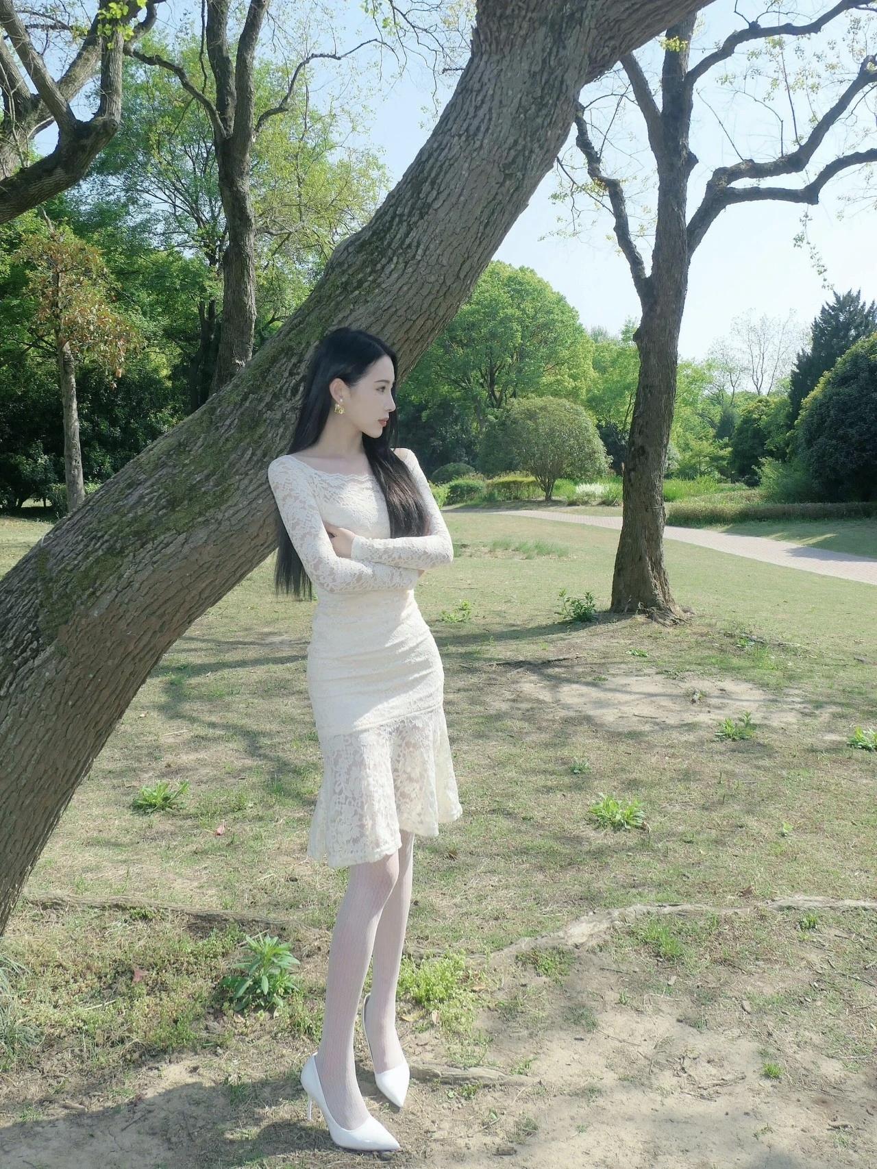 在公园里,优雅蕾丝长裙总能让少女成为焦点。就像街拍里穿白色蕾丝挂脖裙的小姐姐,纯洁淑女,蓬蓬下摆甜美风十足,不规则设计又添时髦感。 想象一下,少女穿着蕾丝长裙漫步在公园花丛中,梨涡甜笑,与美景相互映衬,那画面美得像写真集里的场景,简直美艳十足。