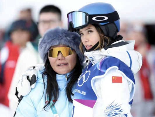 决赛失误,谷爱凌冲向场边,抱着妈妈哭了整整40秒。谷燕没说话,就那么抱着她