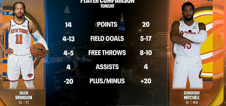 米切尔本场目前17中5&正负值+20,布伦森13中4&正负值-20