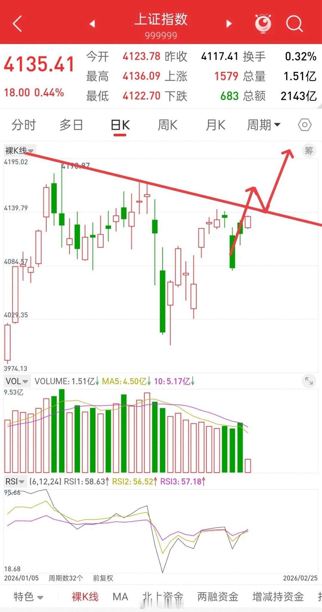 关于指数,缩量上涨还会涨,往上关注4145左右,一旦到这里,基本触及4190-4170两个高点构筑的下降趋势压力。