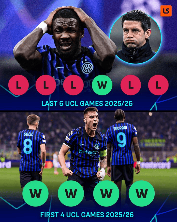 齐沃执教国米的欧冠梦幻开局变成了噩梦,他失利率高达50%(10场5胜5负)。