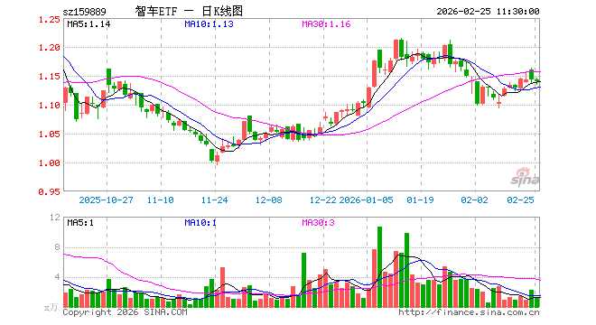 2月25日,截止午间收盘,智能汽车ETF(159889)跌0.26%,报1.140元,成交额147.58万元。智能汽车ETF(159889)重仓股方面,拓普集团截止午盘跌0.95%,豪威集团涨0.72%,科大讯飞跌1.47%,比亚迪涨1.07%,长安汽车涨0.27%,赛力斯涨0.93%,芯原股份跌5.58%,立讯精密涨1.07%,北京君正涨1.51%,德赛西威涨0.50%。