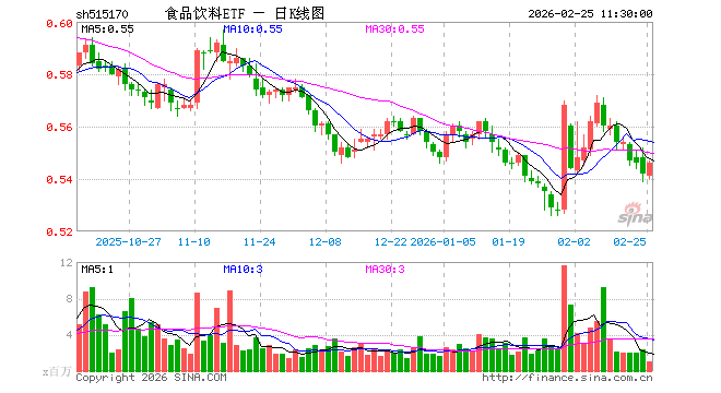 2月25日,截止午间收盘,食品饮料ETF(515170)涨0.74%,报0.546元,成交额5284.79万元。食品饮料ETF(515170)重仓股方面,贵州茅台截止午盘涨2.59%,五粮液涨0.84%,伊利股份涨0.76%,泸州老窖涨0.89%,山西汾酒涨0.76%,海天味业跌0.06%,东鹏饮料涨0.09%,洋河股份涨0.87%,安琪酵母涨1.34%,今世缘涨0.72%。