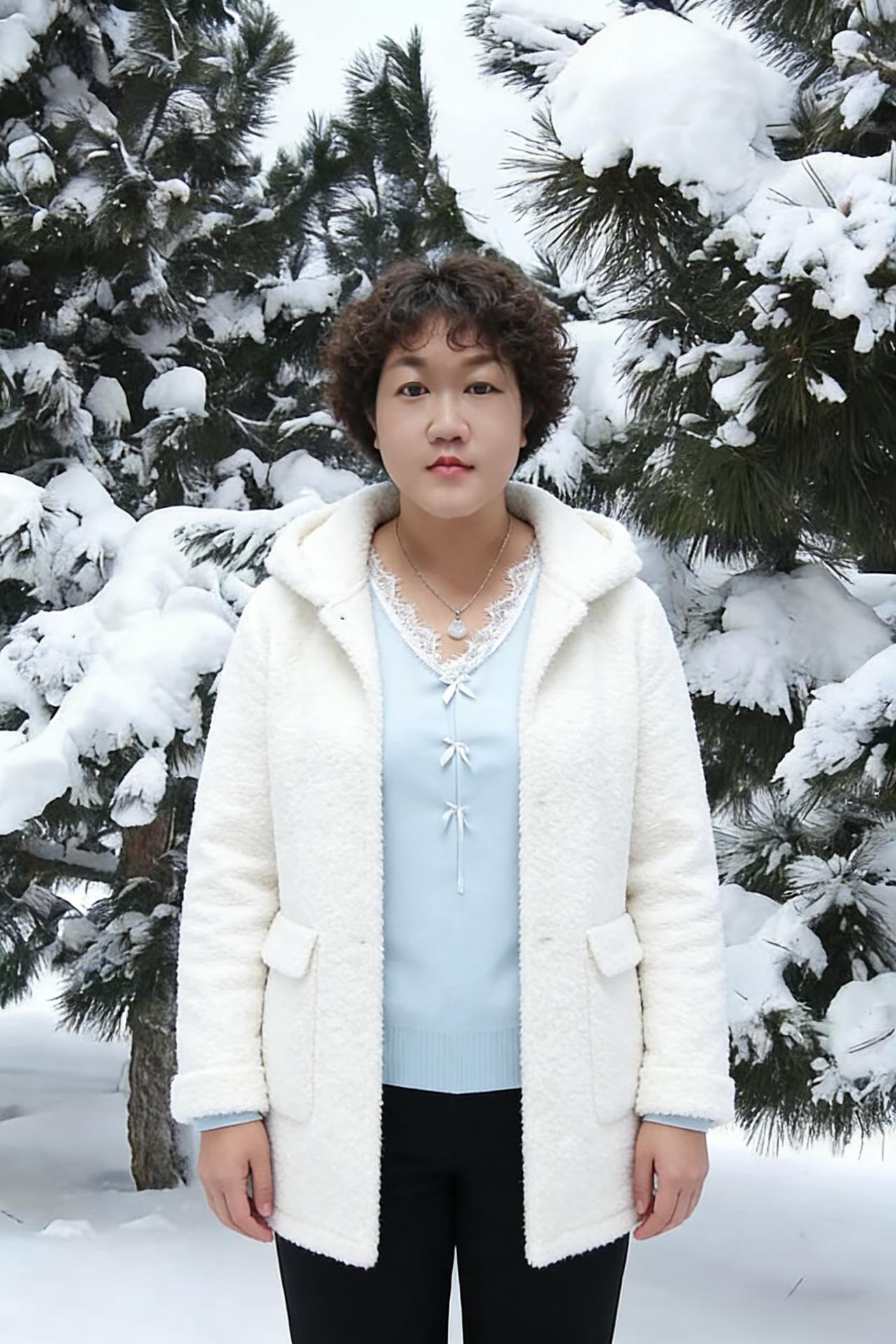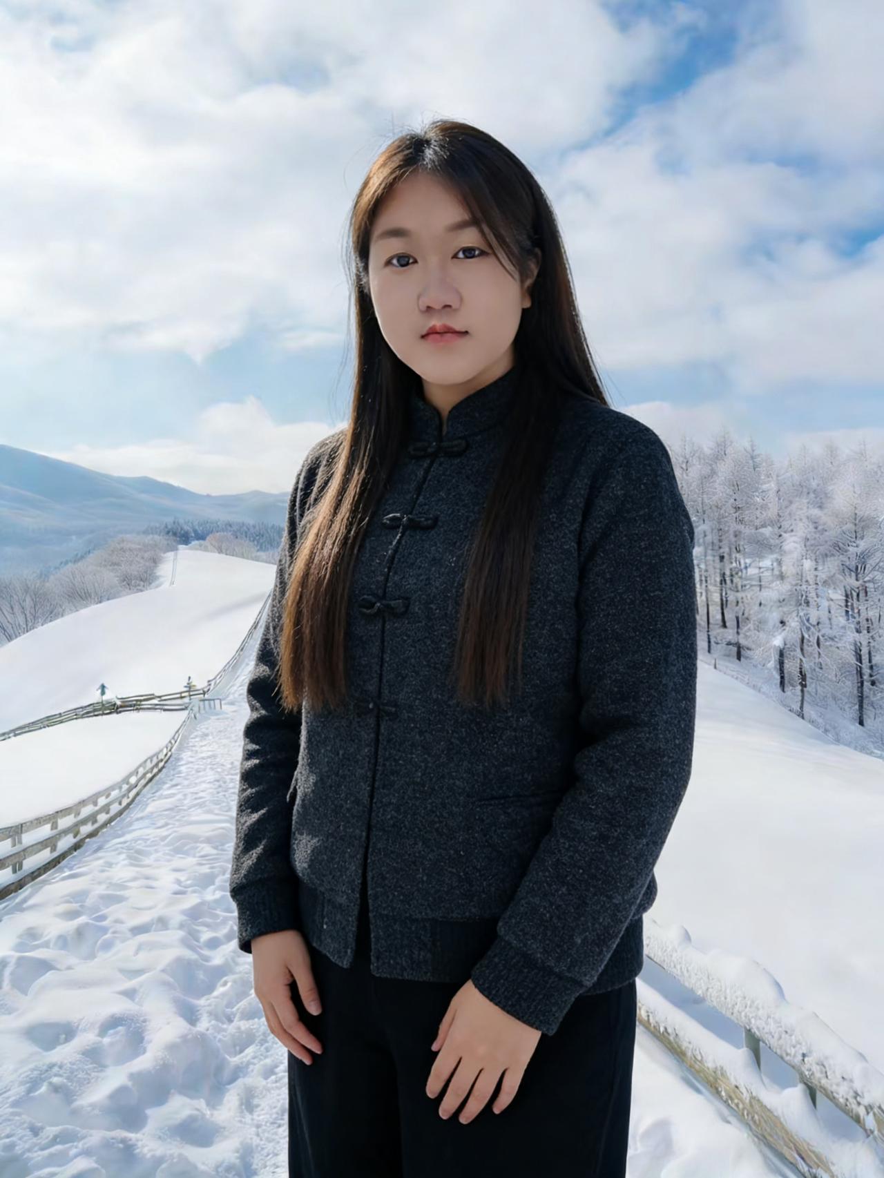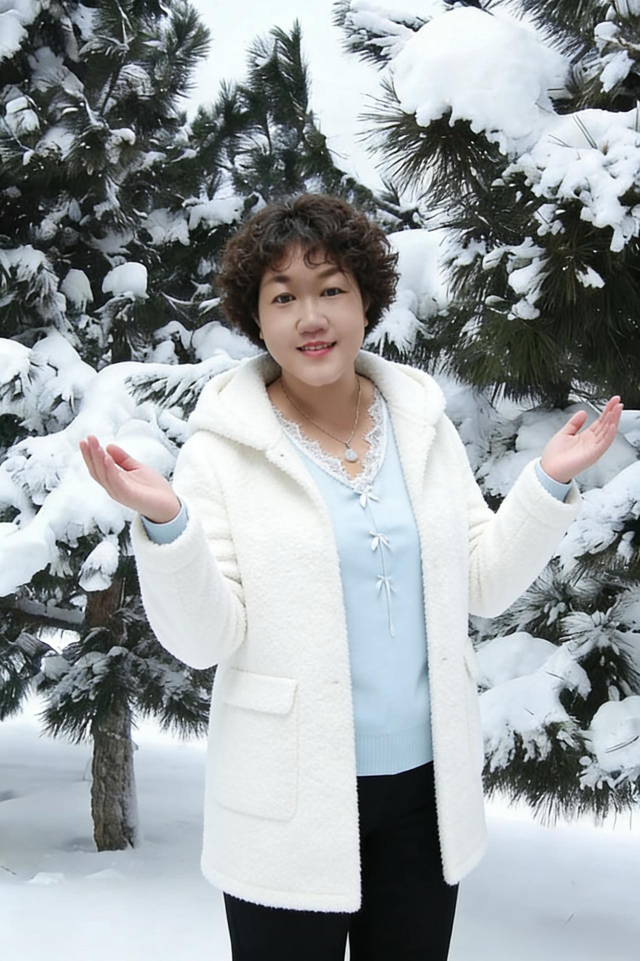 从林间的松雪,到辽阔的雪塬 每一处风景,都因你的身影变得生动 长发高束,或是轻垂,都藏着少年般的洒脱 短衫利落,长袄温柔,皆是岁月赠予的从容 ~ 蓝天铺在头顶,白云漫过峰峦 雪野无垠,铺展着无边无际的浪漫 你抬手比出温柔的弧度,笑意漫上眉弯 刹那间,连冰封的山河都添了几分暖 ~ 黑与白的衣装,是冬日最经典的浪漫 毛领柔软,围巾轻绕,抵过所有风寒 脚下的雪靴踏过初雪,踩出清脆的欢颜 站在群山之巅,看雾凇挂枝,看雪漫平川 ~ 你既有静立的温婉,也有迎风的果敢 既有林下的娴静,也有旷野的舒展 这世间的冬雪,从来不是孤寂的布景 而是衬托你风华的幕布,干净且绚烂 在这万里雪飘的人间,你自成风景 眉眼清澈,身姿挺拔,把寒冬活成了诗篇 每一个转身,每一次凝望,都是独有的惊艳