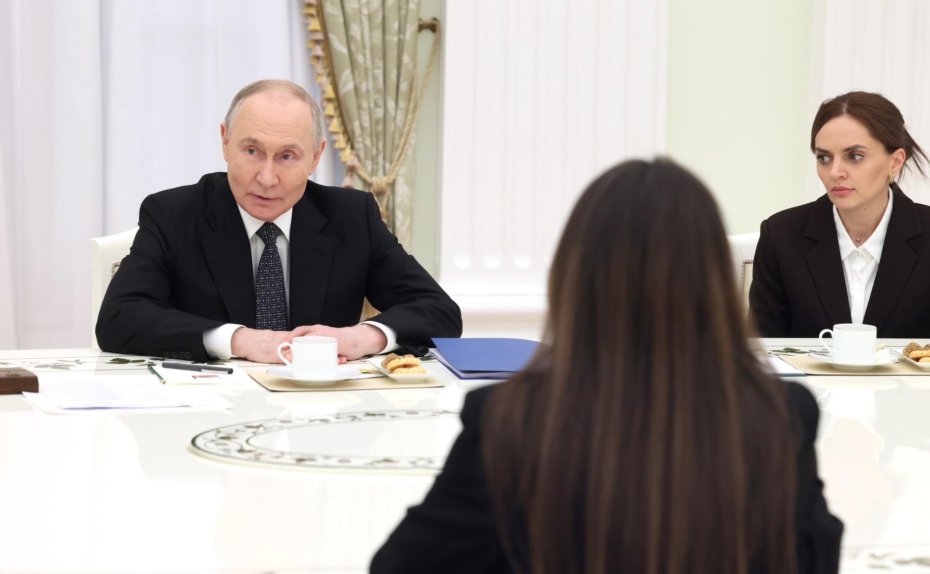 瓦洛佳小朋友 会见英勇牺牲的特种作战部队军人遗孀祖国保卫者日之际,最高统帅在克