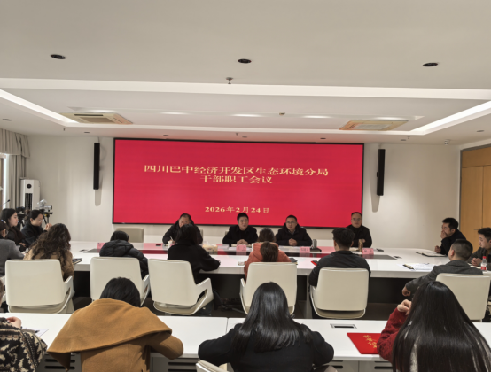 2026年2月24日,巴中经开区生态环境分局召开干部职工会议,动员分局全体干部职工迅速收心归位、凝心聚力,以“满格状态”投入到新的一年工作中。