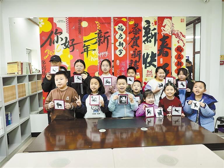 活动中,孩子们化身小小“非遗版画传承人”,用稚嫩的双手紧握拓印工具、画笔。当墨色晕染开来,一匹匹奔腾的骏马在纸上逐渐显现,孩子们脸上洋溢着满满的成就感与喜悦。