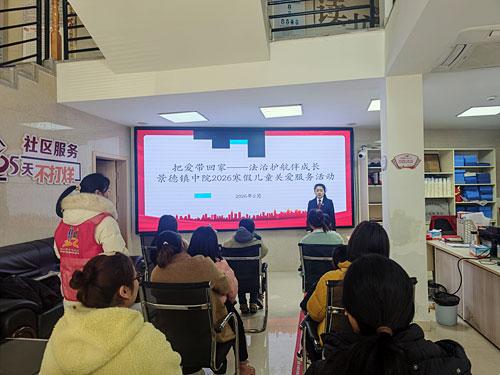 近期,景德镇市中级人民法院(以下简称“景德镇中院”)在辖区开展寒假未成年人关爱服务系列活动,通过心理疏导、家庭教育指导、社区普法宣传等形式,以司法温情传递关爱,以法治力量护航未成年人健康成长。