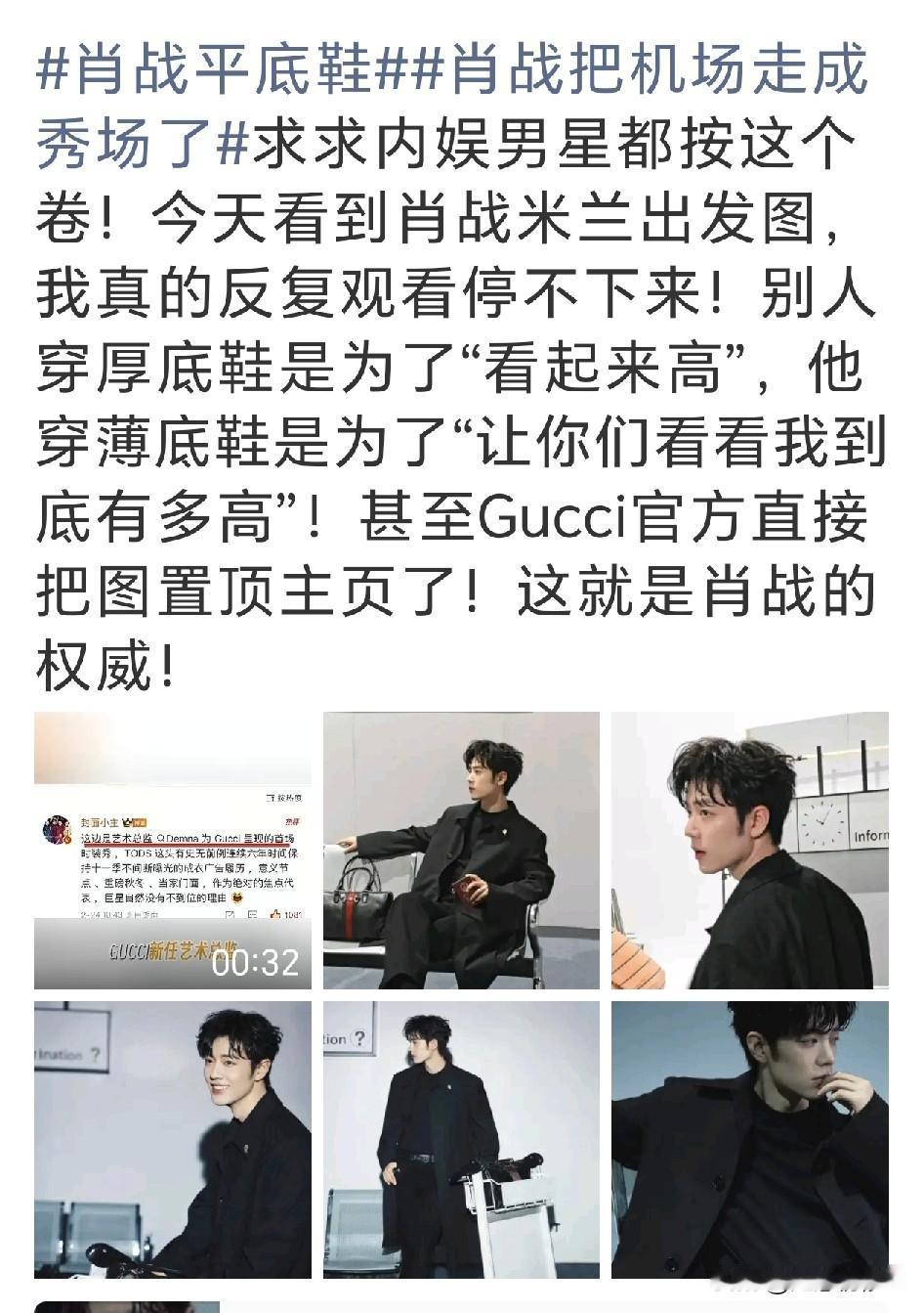 长大衣配超薄平底鞋🥿,身高不够,比例不够,身材不够,气质不够的男女明星都不太敢穿吧,难怪Gucci置顶自已唯一全球代言人的出发图,谁请到肖战不得骄傲炫耀啊时尚感平底鞋 超长大衣穿搭 肖战 就知道肖战这身出发造型会被网友讨论上热搜,穿搭太迷人了,脸也好迷人。🦐多去加热话题,多带话题发帖啊
